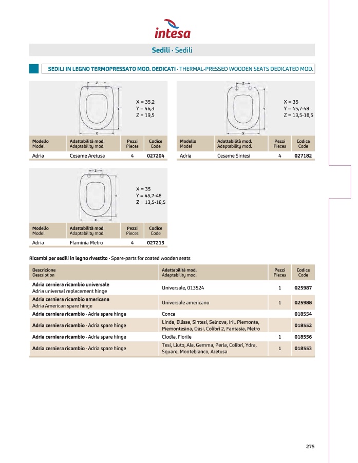 SEDILIIN LEGNOTERMOPRESSATOMOD. DEDICATI. THERMAL-PRESSED