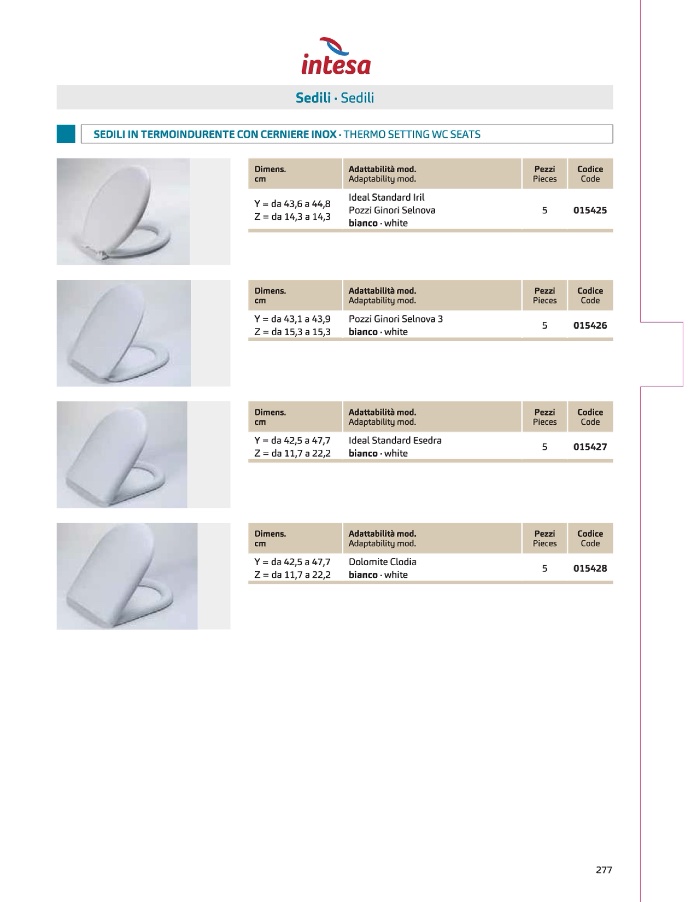 I SEDILIINTERMOINDURENTECONCERNIEREINOX.THERMOSETTING