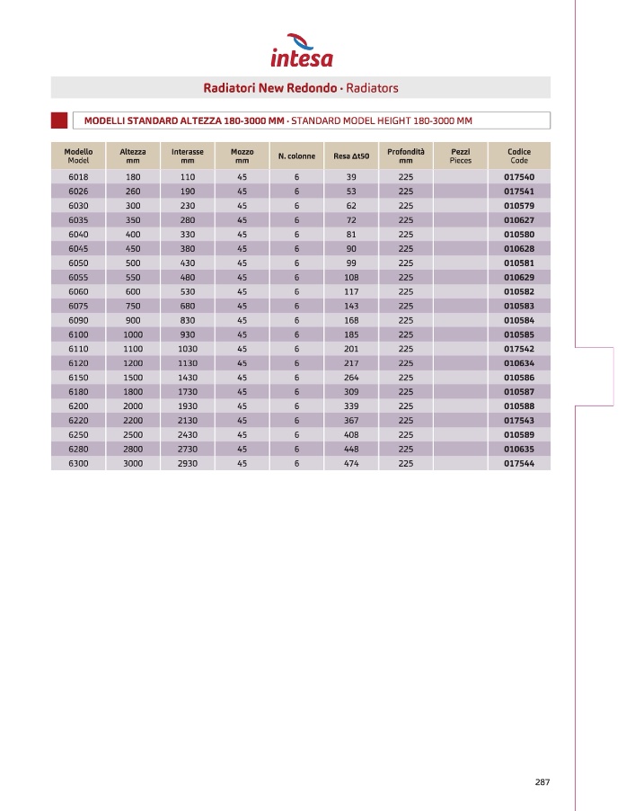 MODELLI STANDARD Al TEZZA 180-3000 MM· STANDARD MODEL HEIGHT 180-3000 MM