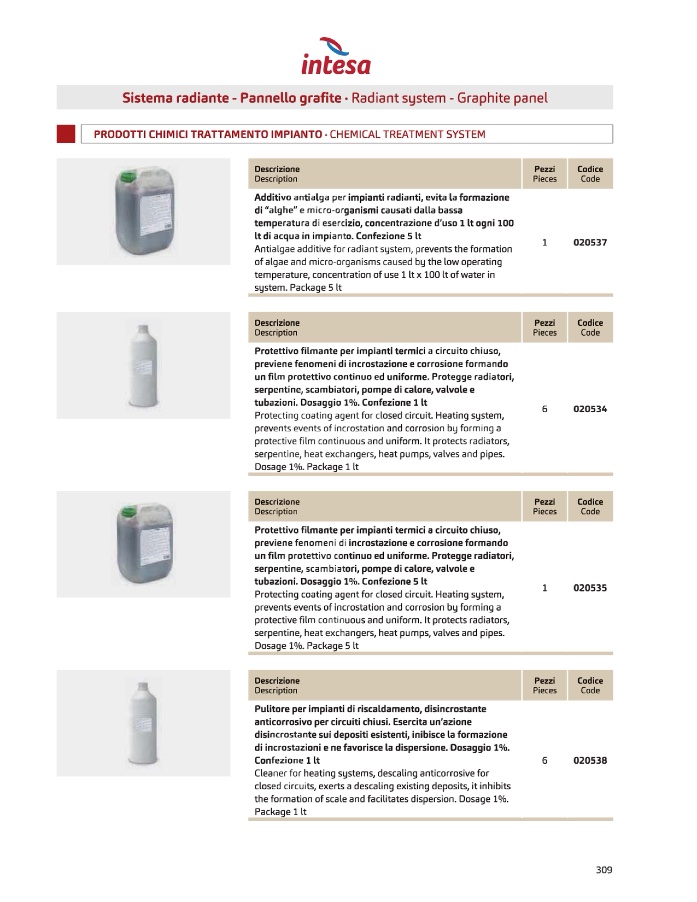 PRODOTTI CHIMICI TRATTAMENTO IMPIANTO. CHEMICALTREATMENTSYSTEM