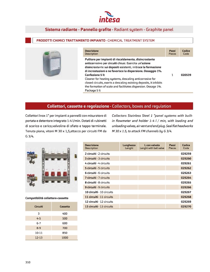 Collettori, cassette e regolazione• Collectors, boxes and regulation