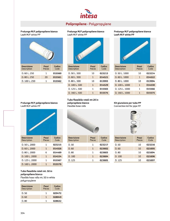 Prolunga M/F polipropilene bianco