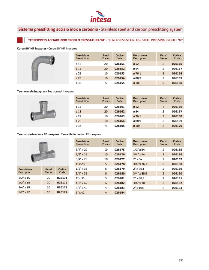 I TECNOPRESSACCIAIOINOXPROFILOPRESSATURA"M". TECNOPRESSTAINLESSTEELPRESSINGPROFILE"M" I