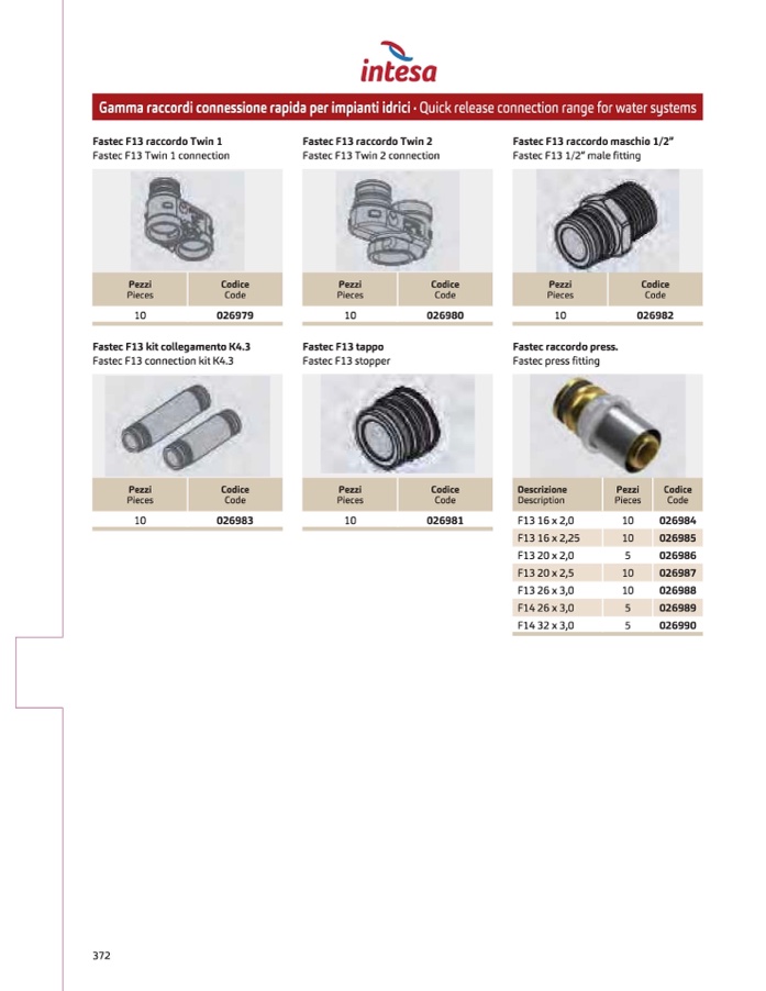 Gammaraccordcionnessiornaepidaperimpiantiidrici•Quickreleaseconnectionrangefar watersystems