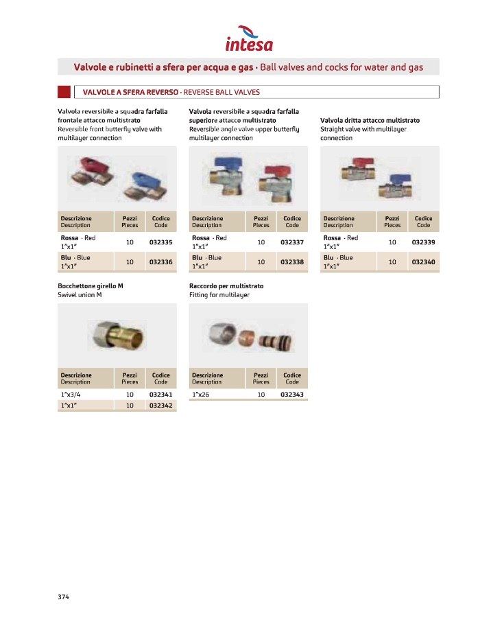 Valvola dritta attacco multistrato