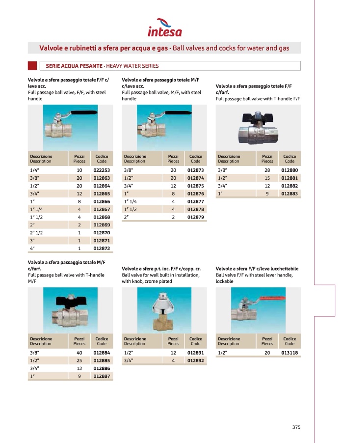 Valvole e rubinetti a sfera per acqua e gas• Ball valves and cocks far water and gas