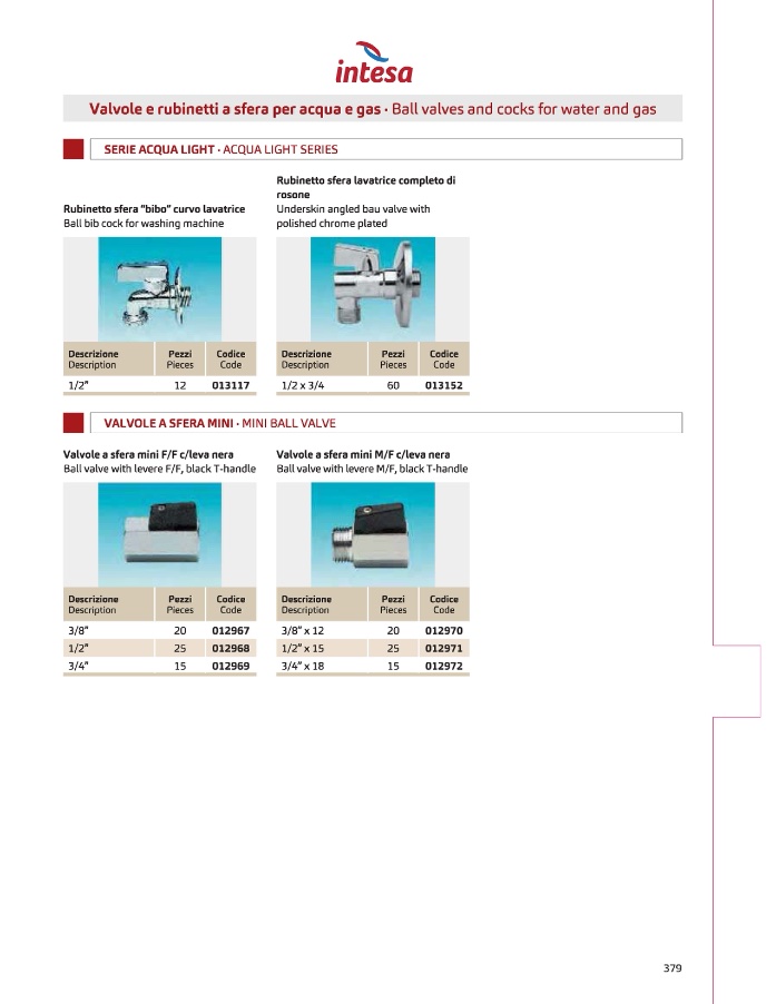 Valvole e rubinetti a sfera per acqua e gas• Ball valves and cocks far water and gas