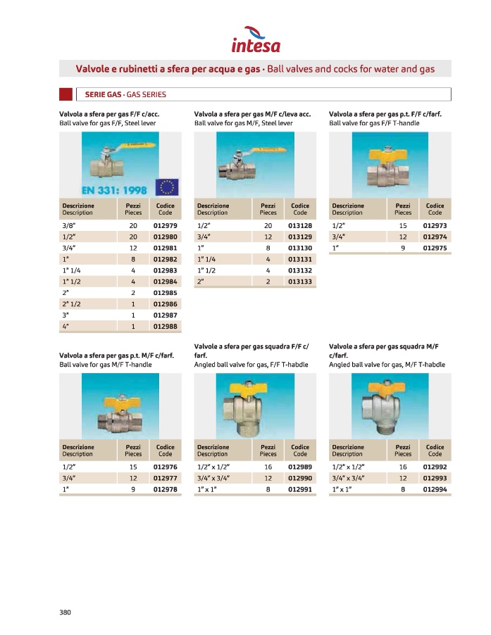 Valvole e rubinetti a sfera per acqua e gas• Ball valves and cocks far water and gas