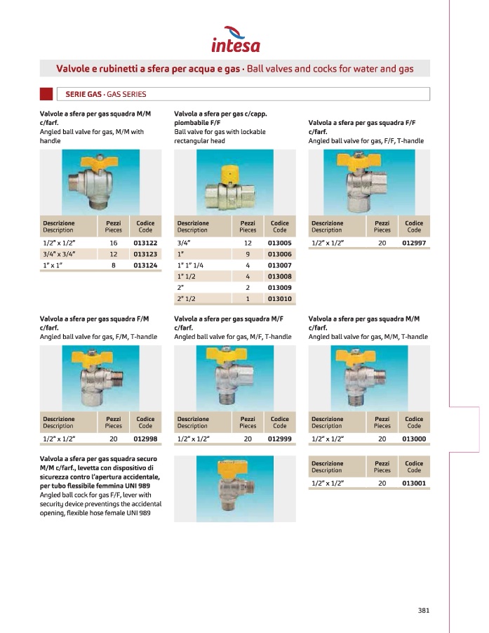 Valvole e rubinetti a sfera per acqua e gas• Ball valves and cocks far water and gas