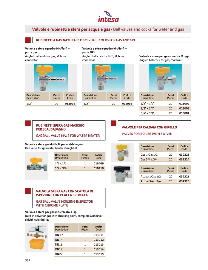 Valvole e rubinetti a sfera per acqua e gas• Ball valves and cocks far water and gas