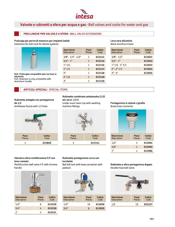 Valvole e rubinetti a sfera per acqua e gas• Ball valves and cocks far water and gas