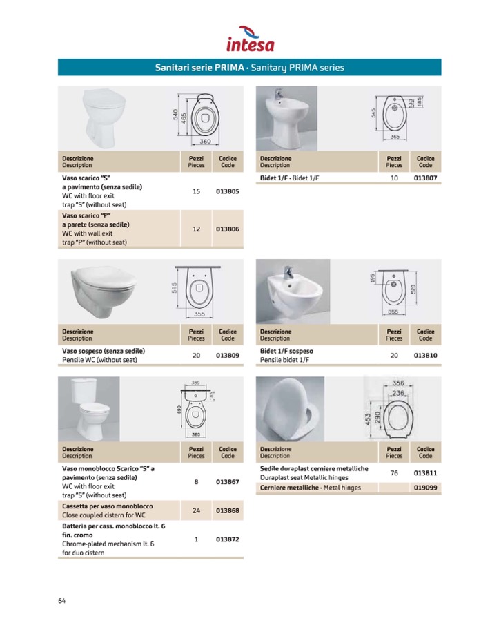 Sanitari serie PRIMA• Sanitary PRIMA series