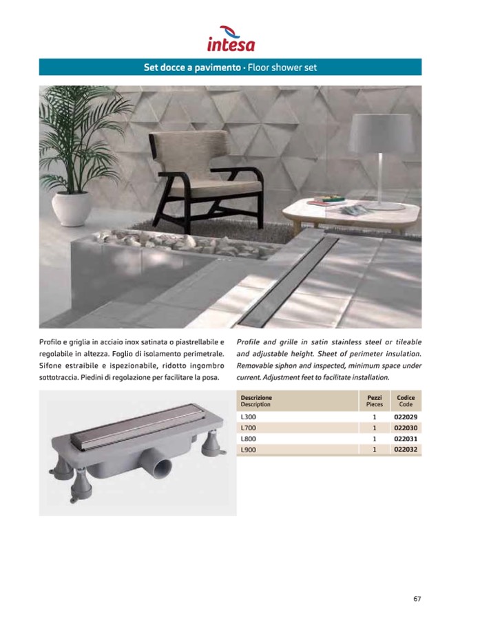 Profilo e griglia in acciaio inox satinata o piastrellabile e