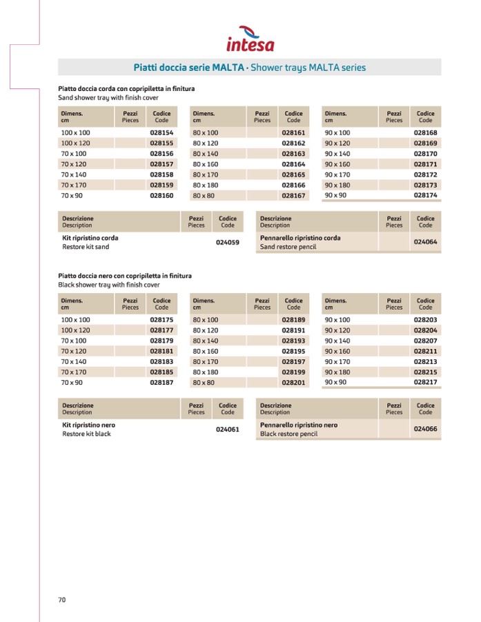 Piatti doccia serie MALTA• Shower trays MALTA series