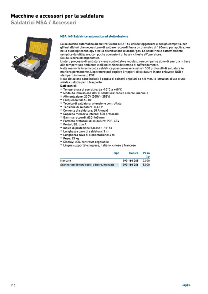 nella building technology e nella distribuzione di acqua/gas. La saldatrice è estremamente