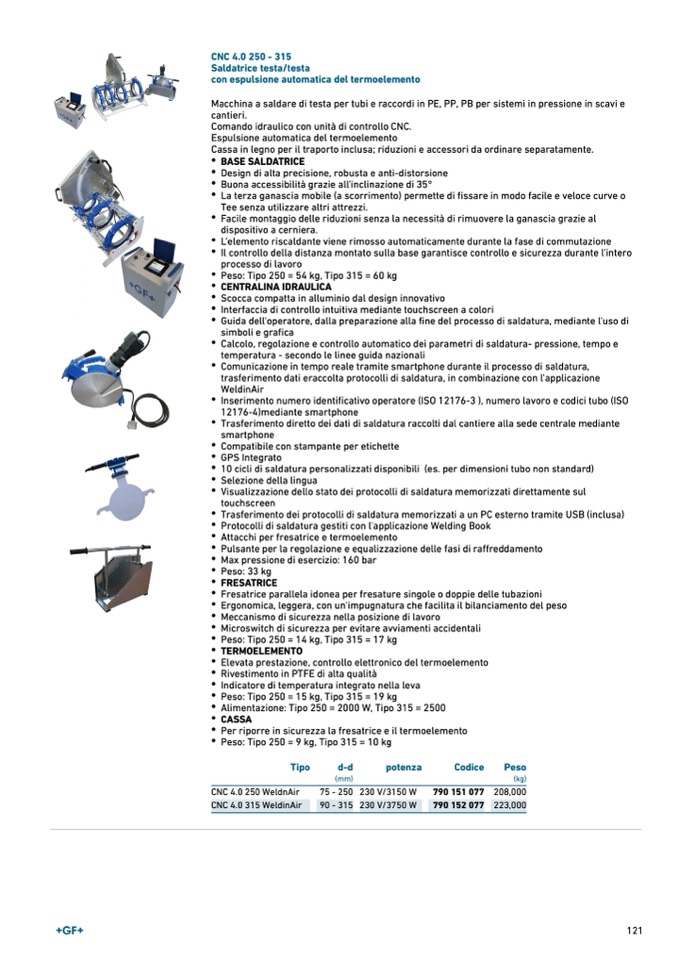 Macchina a saldare di testa per tubi e raccordi in PE, PP, PB per sistemi in pressione in scavi e