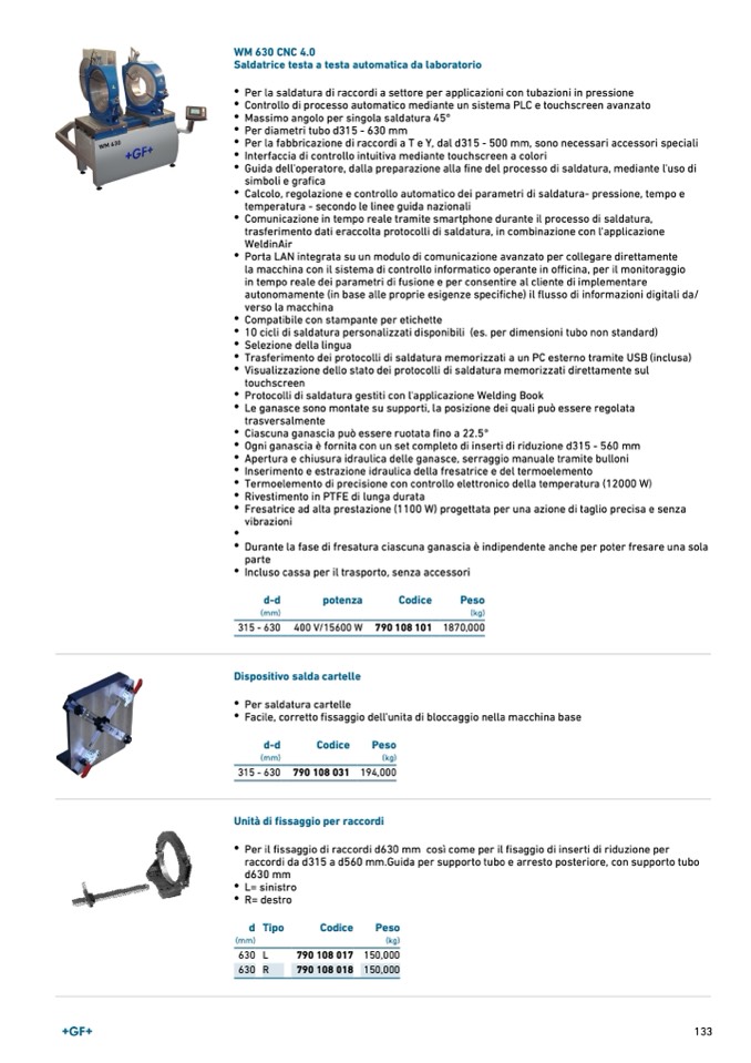 Per il fissaggio di raccordi d630 mm così come per il fisaggio di inserti di riduzione per
