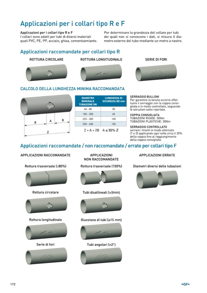 Applicazioni per i collari tipo R e F