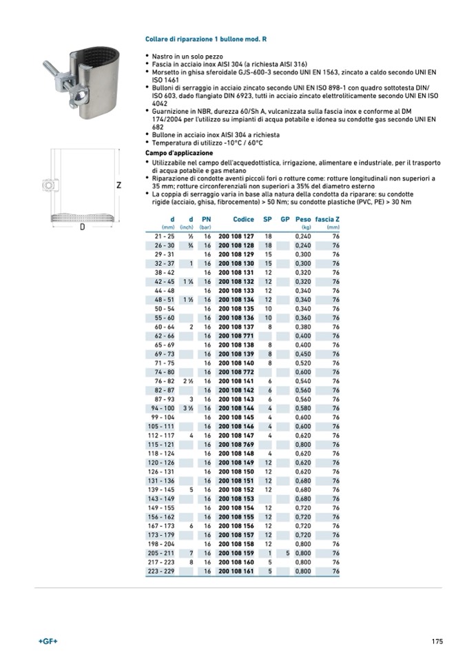 La coppia di serraggio varia in base alla natura della condotta da riparare: su condotte