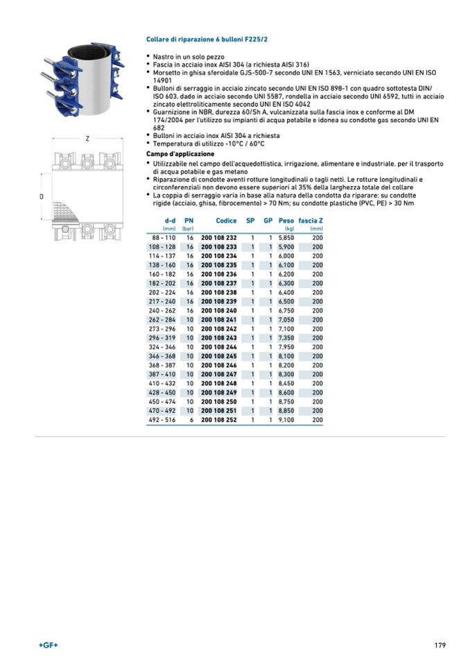 Collare di riparazione 6 bulloni F225/2