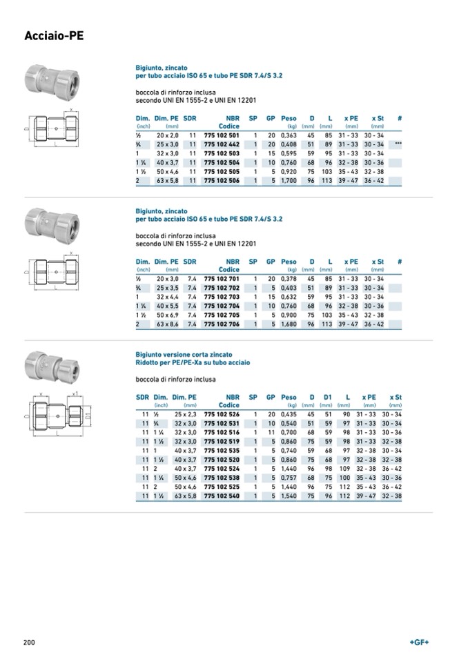 per tubo acciaio ISO 65 e tubo PE SDR 7.4/S 3.2