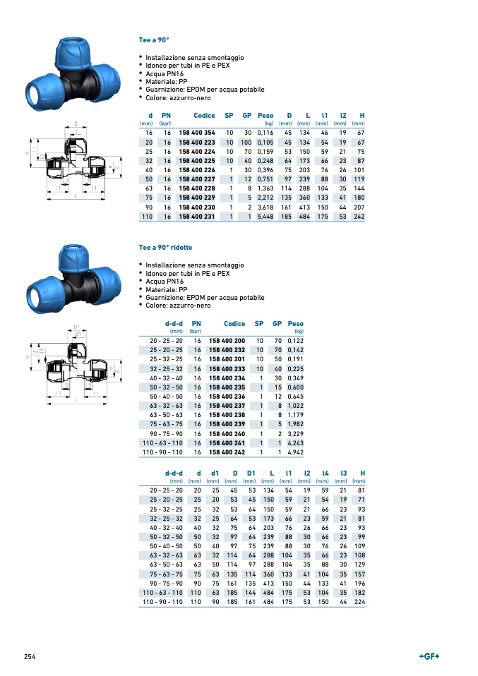 Tee a 90° ridotto