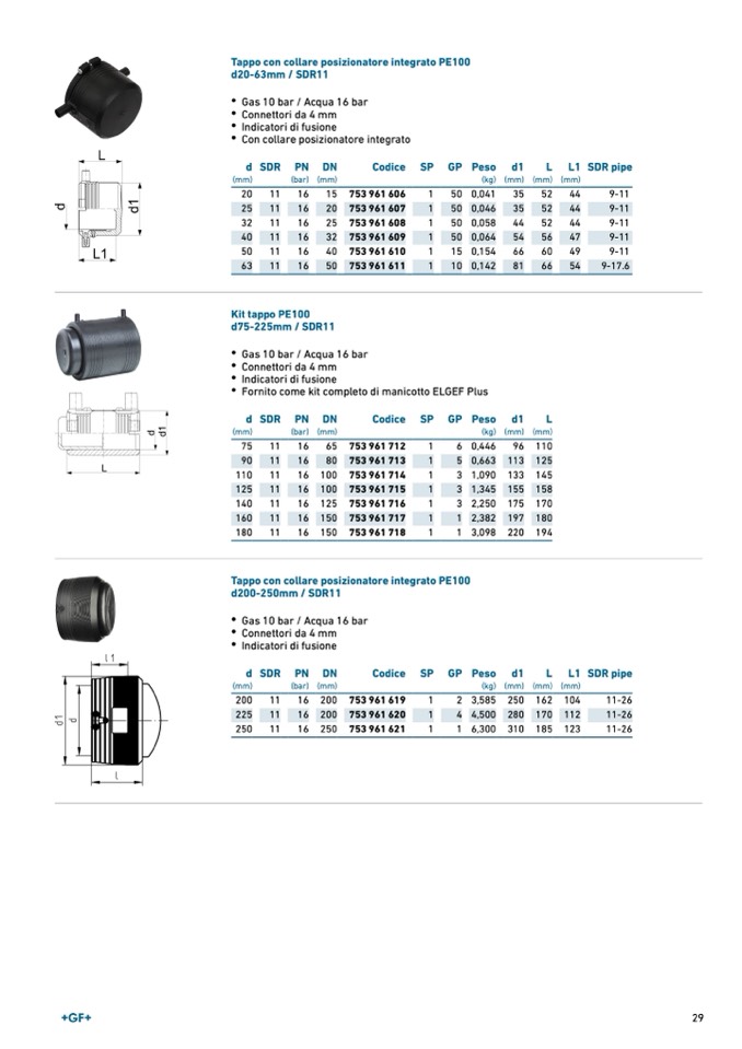Tappo con collare posizionatore integrato PE100