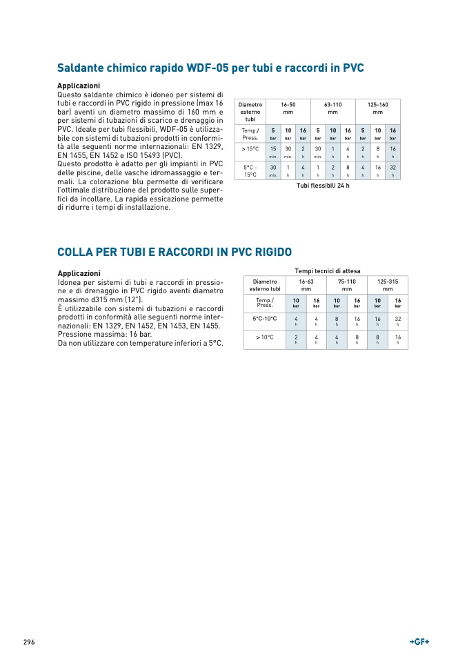 EN 1455, EN 1452 e ISO 15493 (PVC).
