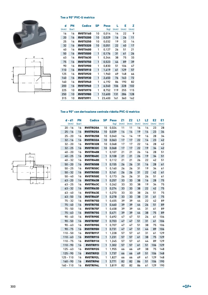 Tee a 90° con derivazione centrale ridotta PVC-U metrico