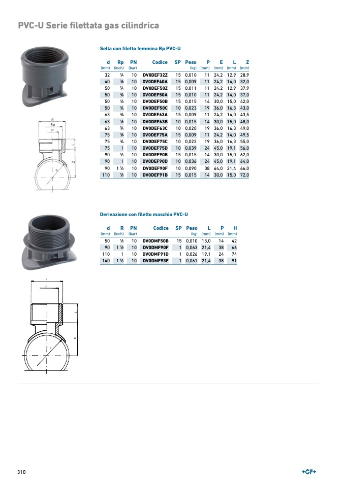 Sella con filetto femmina Rp PVC-U
