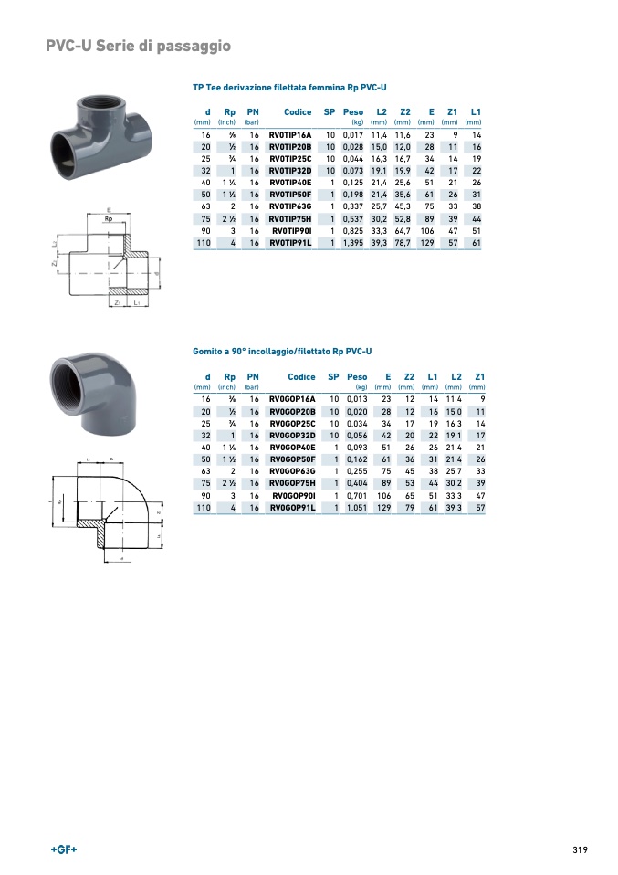 Gomito a 90° incollaggio/filettato Rp PVC-U