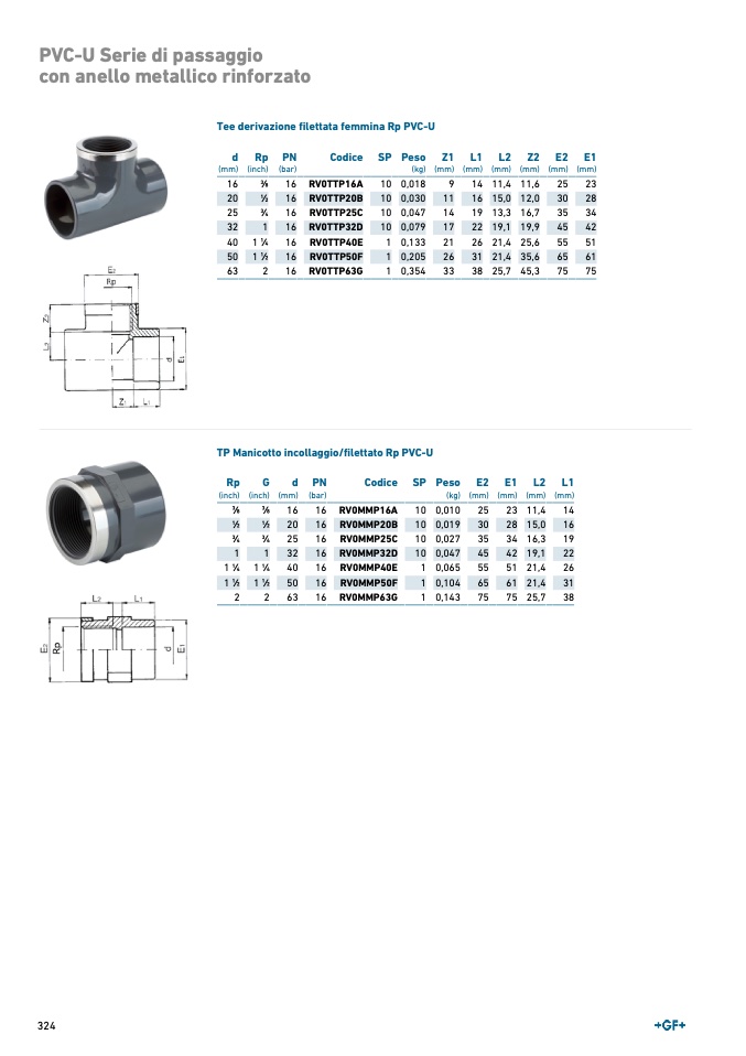 TP Manicotto incollaggio/filettato Rp PVC-U