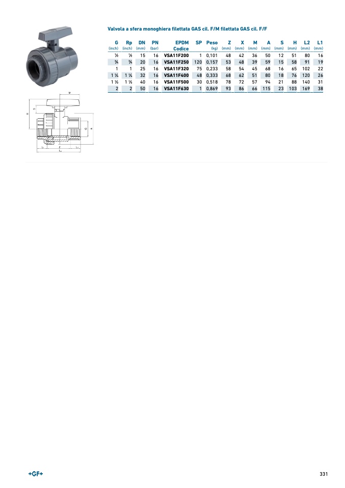 Valvola a sfera monoghiera filettata GAS cil. F/M filettata GAS cil. F/F