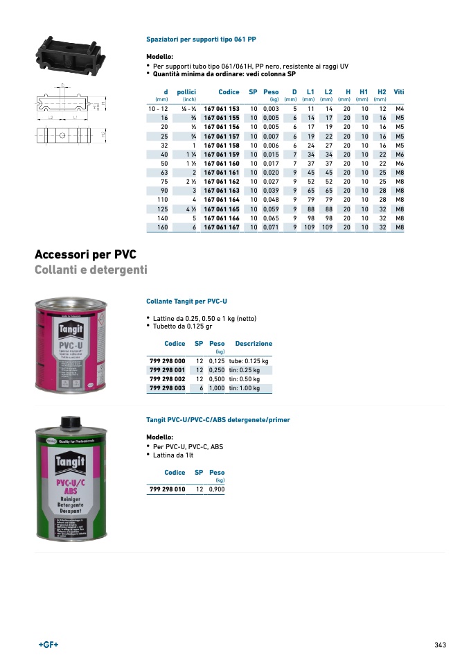 Per supporti tubo tipo 061/061H, PP nero, resistente ai raggi UV