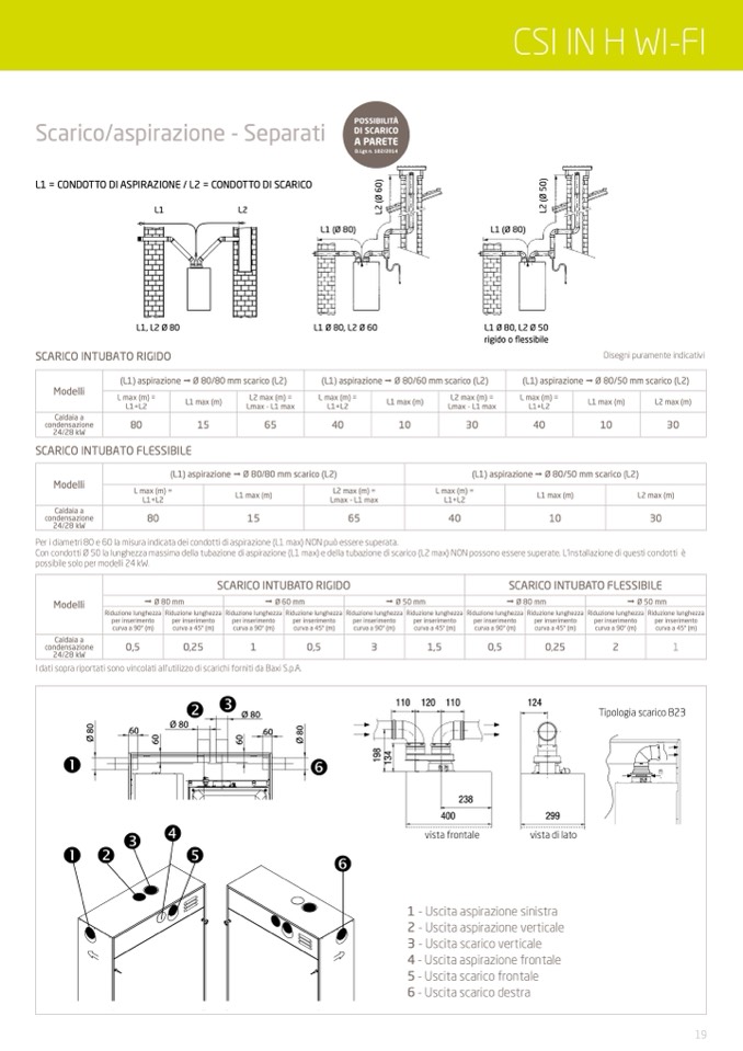 I dati sopra riportati sono vincolati all'utilizzo di scarichi forniti da Baxi S.p.A.
