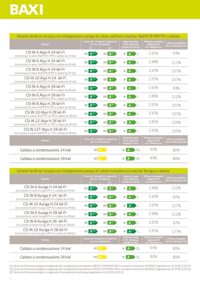 (1) Classe di efficienza energetica stagionale del riscaldamento d’ambiente a BASSA TEMPERATURA in condizioni climatiche AVERAGE (regolamento UE N° 811/2013)