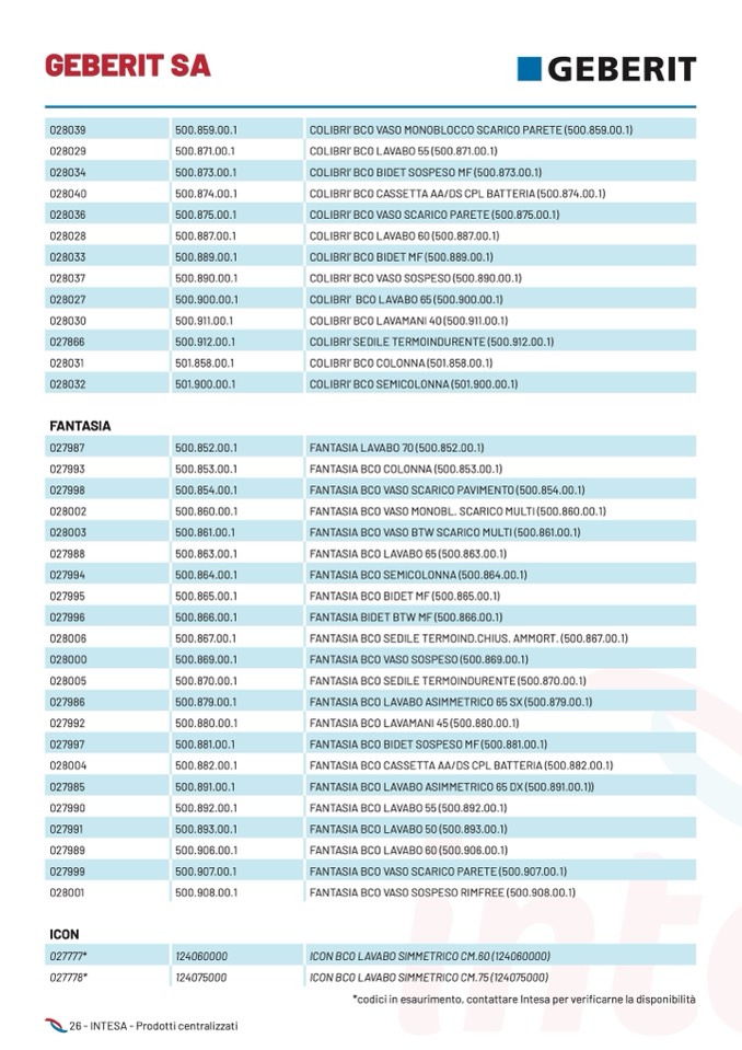 *codici in esaurimento, contattare Intesa per verificarne la disponibilità