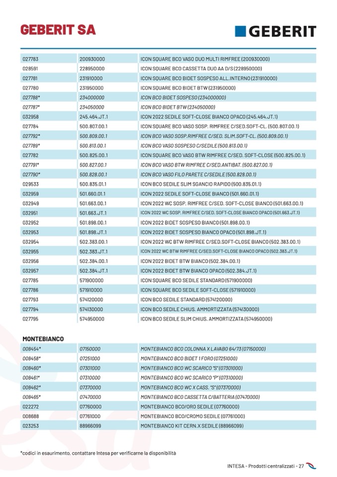 *codici in esaurimento, contattare Intesa per verificarne la disponibilità