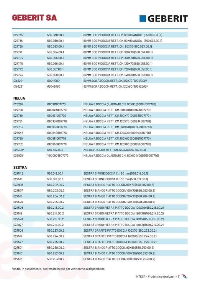 *codici in esaurimento, contattare Intesa per verificarne la disponibilità