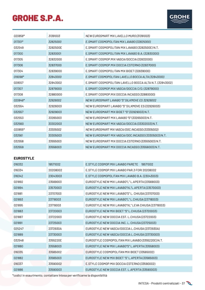 *codici in esaurimento, contattare Intesa per verificarne la disponibilità