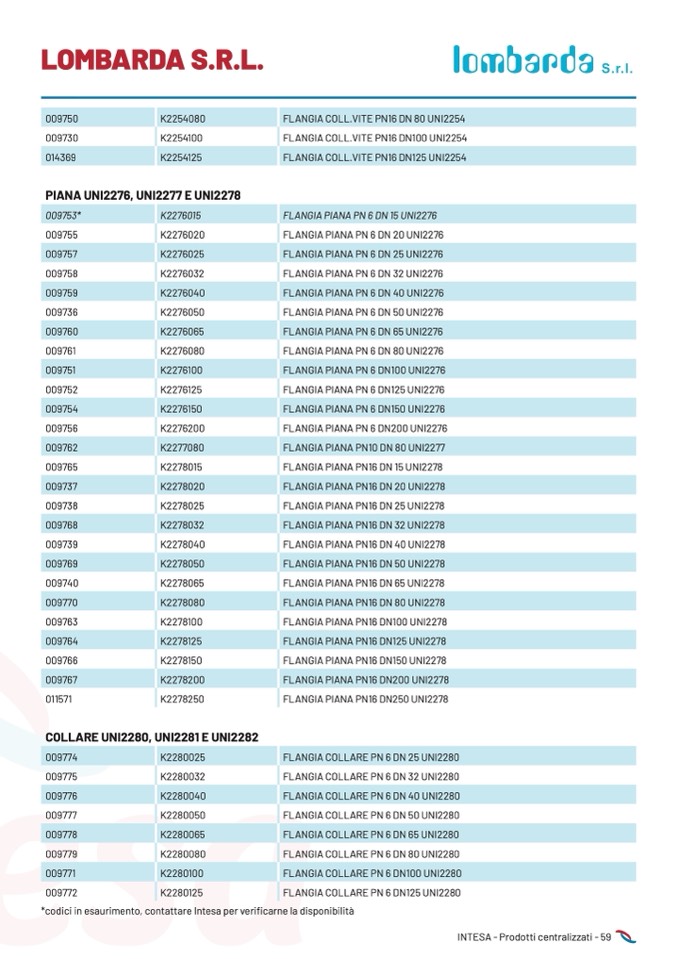 *codici in esaurimento, contattare Intesa per verificarne la disponibilità