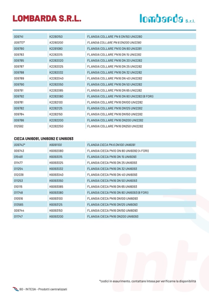 *codici in esaurimento, contattare Intesa per verificarne la disponibilità