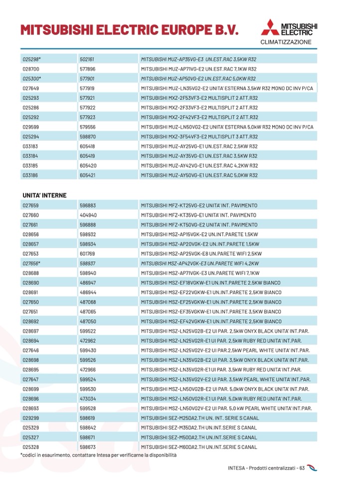 *codici in esaurimento, contattare Intesa per verificarne la disponibilità
