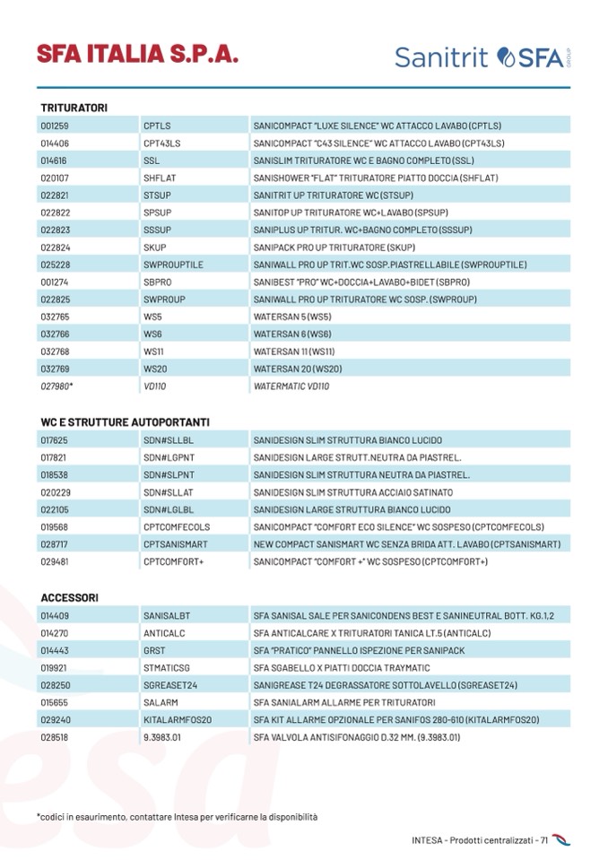 *codici in esaurimento, contattare Intesa per verificarne la disponibilità