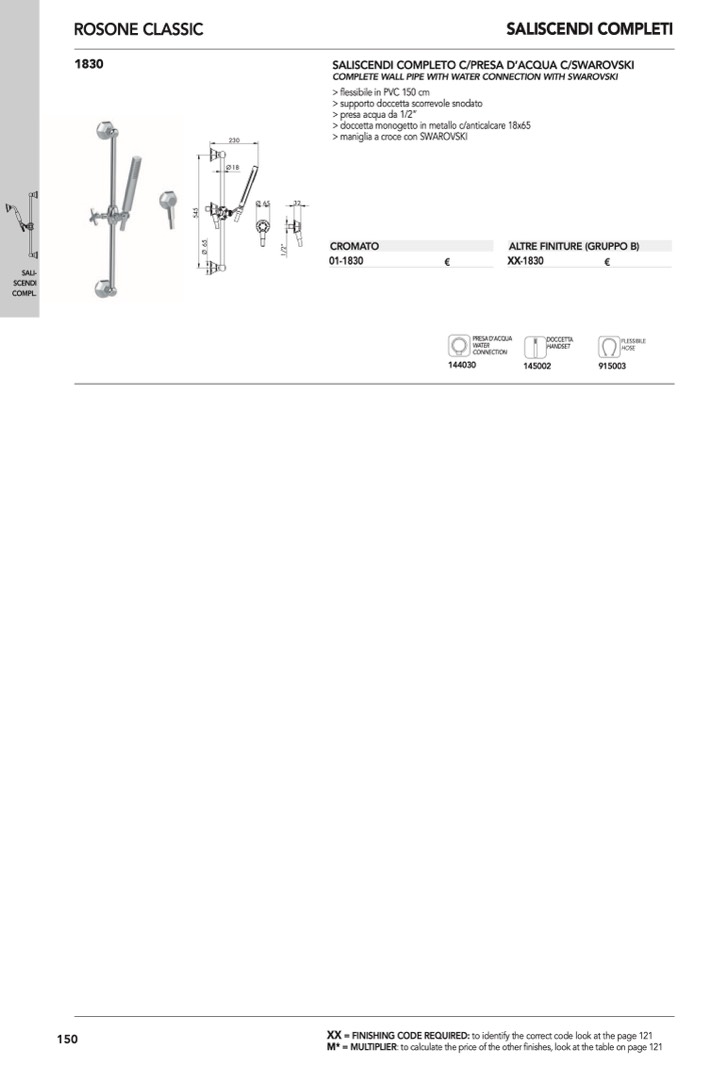 COMPLETE WALL PIPE WITH WATER CONNECTION WITH SWAROVSKI