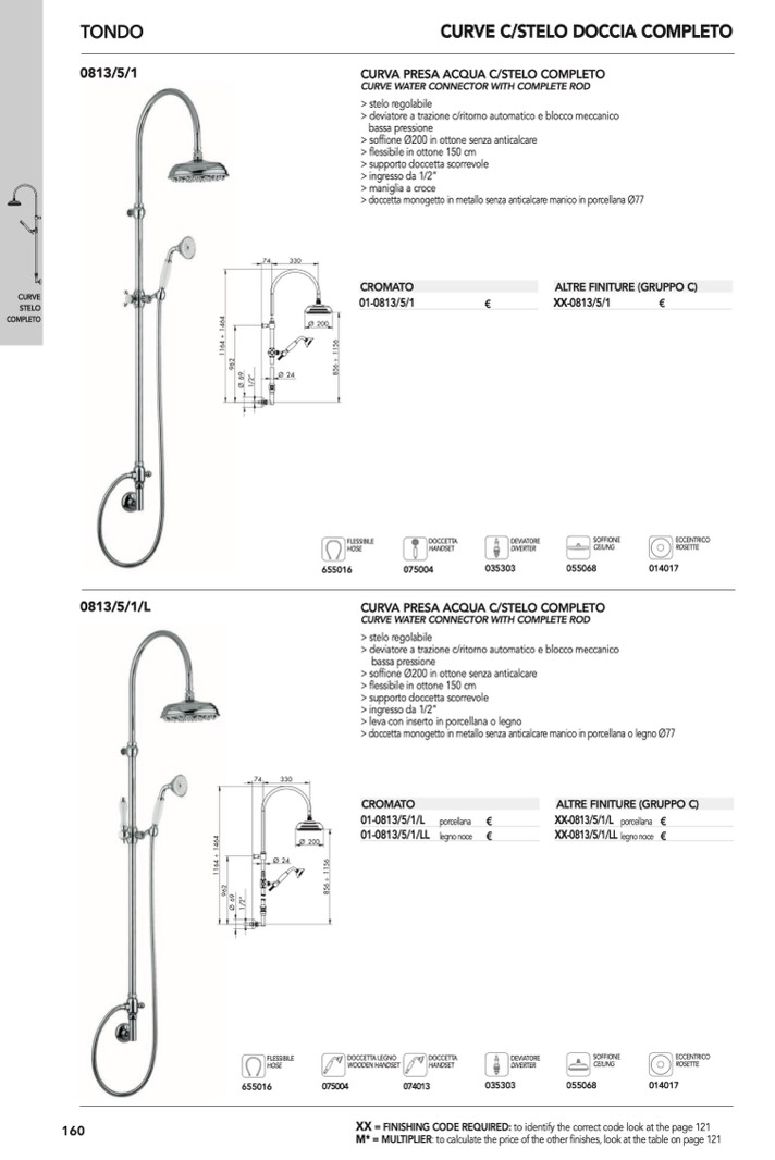 > soffione Ø200 in ottone senza anticalcare