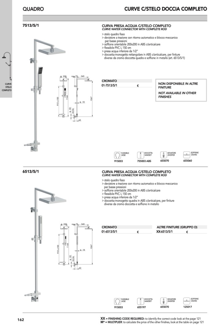 diverse da cromo doccetta quadra e soffione in metallo (art. 6513/5/1)