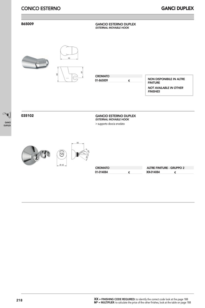 : to calculate the price of the other finishes, look at the table on page 188