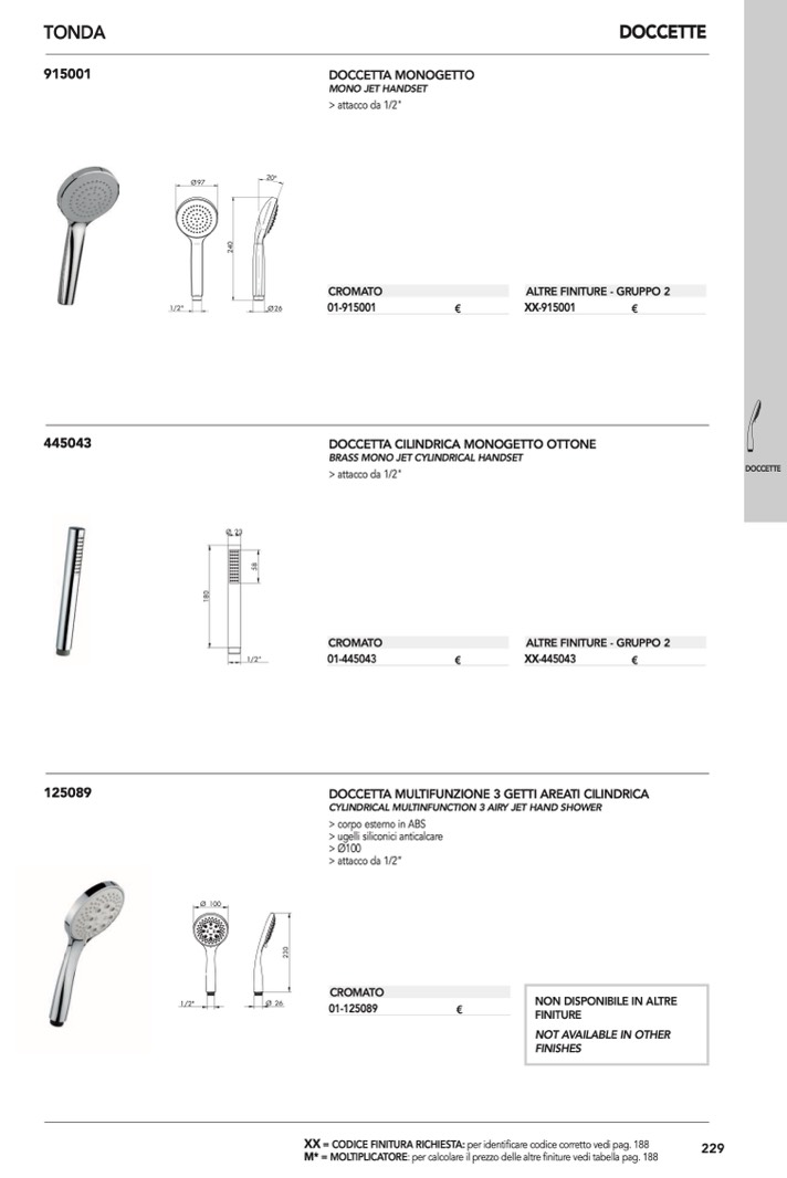 : per calcolare il prezzo delle altre finiture vedi tabella pag. 188