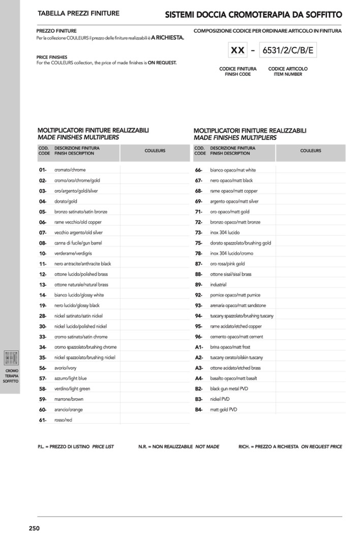COD. DESCRIZIONE FINITURA
